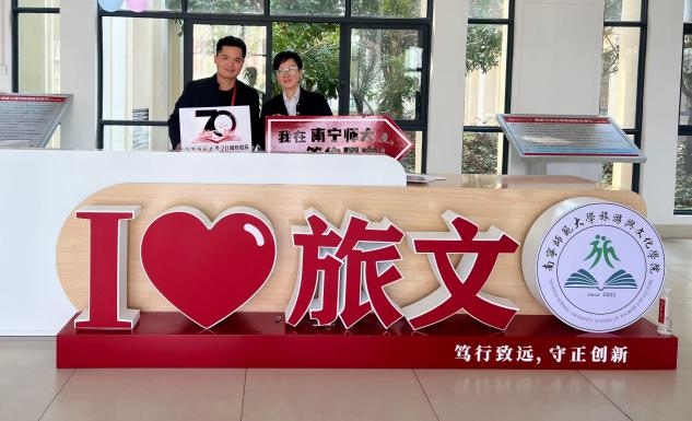 这一次回母校,感受到了在外拼搏的游子归家时的喜悦,见到当年的老师和员工,感觉特别亲切。您看,我跟甘书记的合照,我牵着她的手照的,当年她的统计学我学得特别认真,她的要求特别严格,所以她那门课程,期末考试分数都不会低。您看,我跟2011级学弟莫入兵的合照,仿佛就像两兄弟,他身上有很多与我相同的共同点,让我感觉相见恨晚,他在广西美术馆工作过,他现在在广旅集团做一键游广西,做集团二级公司的笔杆子,他还写得一手好字,曾经做过书法老师,与我志趣相投,加上他在广旅集团所做的工作,也同样与旅游业紧密相关,实在是相见恨晚!