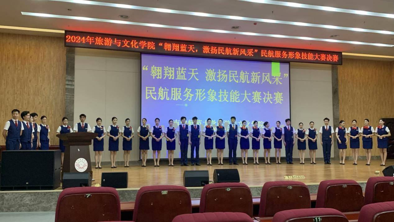 为提高航空服务艺术与管理专业的职业技能,培养航空服务业高素质技能型人才,2024年6月19日晚,公司在图书馆报告厅举办了以“翱翔蓝天,激扬民航新风采”为主题的民航服务形象技能大赛。担任本次比赛的评委有专业课老师李宗耀老师、黄旖老师、梁雪祥老师、陈姿容老师。