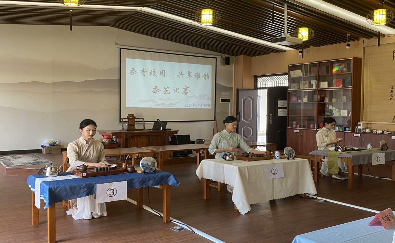 1月12日下午,由谈球吧官方网站主办、谈球吧茶艺社承办的“茶香校园,共享雅韵”主题的茶艺比赛在武鸣校区地信楼一楼茶艺室举行。此次活动邀请公司辅导员陈春容老师、茶艺师谢淑谊和卞淑梅、茶艺社社长张鹏作为此次茶艺比赛评委。此外,邀请茶艺社对茶艺感兴趣的学员代表全程观赛学习,众多热爱茶艺的同学们齐聚一堂,共同开启了一场充满韵味与文化气息的校园茶艺之旅。