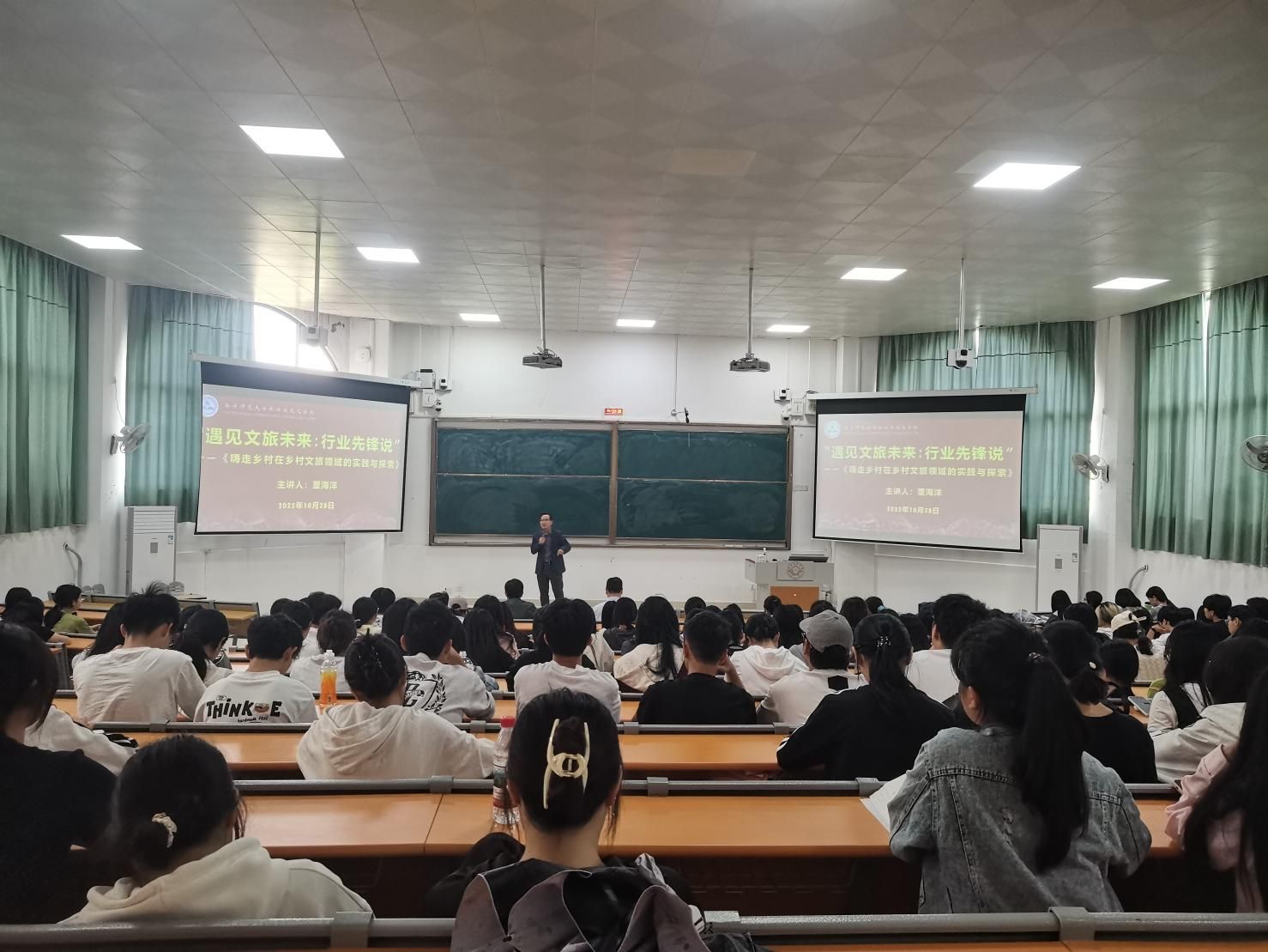 为深化旅游管理专业员工对乡村文旅产业的理解,增强专业实践能力,10月28日,谈球吧官方网站成功举办“遇见文旅未来 行业先锋说”专题讲座。本次讲座特邀覃海洋担任主讲,聚焦乡村文旅发展前沿动态,为师生提供了一场理论深厚、实践性强的学术交流。谈球吧官方网站经理段文军、曹世武副教授、方世巧教授、郭亮博士及各年级旅游管理专业员工代表参加了本次讲座。