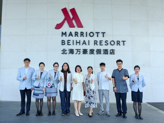 授章仪式结束后,黄珍副书记一行前往北海万豪度假酒店,开展实习就业员工慰问与访企拓岗活动,受到酒店相关领导热情接待。在实习就业座谈会上,公司老师详细了解员工在酒店的工作内容、生活保障及职业发展需求,倾听员工实习感悟与困惑,叮嘱员工珍惜实践机会、提升职业技能;同时与酒店领导深入交流,围绕人才培养标准、实习岗位设置、就业合作方向等议题展开探讨,双方就进一步优化实习方案、建立长期人才输送机制达成初步共识,为公司学子拓宽就业渠道、提升就业质量奠定基础。