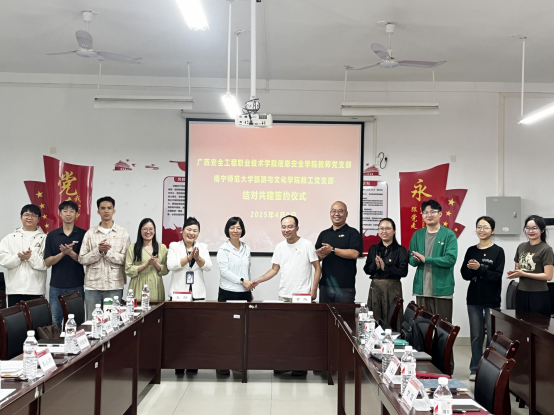 会后,王静教授和甘政博士代表所在党支部签署结对共建协议书;并实地参观了公司“一中心、两厅、三廊、四室”的建设情况。结对双方将在持续抓好支部标准化、规范化建设的同时,充分发挥“新时代全国高公司党建工作样板支部”和广西高校“双带头人”教师党支部书记“强国行”专项行动团队的示范带头作用,促进提高结对共建工作水平,推动提升结对共建质量,增强基层党组织活力和成效,进一步增强影响力与号召力,使全国样板党支部的辐射作用持续增强。